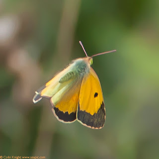 While Clouded Yellows are almost guaranteed at Kithurst I continue to pursue them. Yesterday I saw two males and it was warm enough for them to nectar to enable me to obtain some more flight shots. There were two Walls on the entry path.